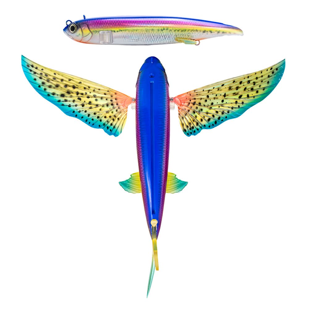 El Nomad Slipstream Flying Fish es un revolucionario señuelo híbrido de alta resistencia que ha sido diseñado para imitar perfectamente a un pez volador tanto en apariencia como en acción en el agua. Estos señuelos para peces voladores Nomad son extremadamente versátiles y se pueden lanzar, pescar con curricán o desde papalote, con una gran variedad de opciones de montaje para adaptarse a su estilo específico de pesca. El exclusivo diseño de alas plegables permite que las alas se plieguen hacia atrás cuando se lanzan para una mayor distancia o cuando se lucha contra grandes atunes y marlines para reducir la resistencia al agua. Las alas, la aleta caudal y las aletas laterales se pueden cambiar o reemplazar con los JUEGOS DE ALAS de Nomad Design para crear su propio esquema de color de pez volador definitivo.